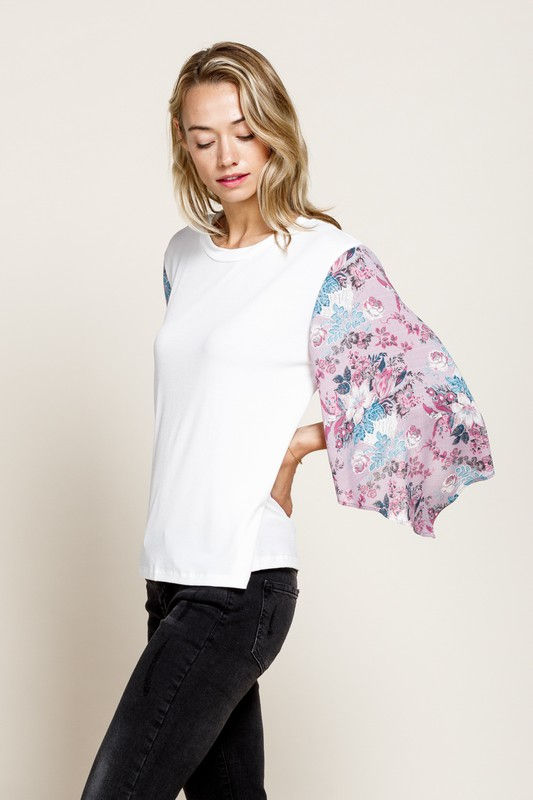 Long-Sleeved Top with Cut-Out Shoulders and Floral Back